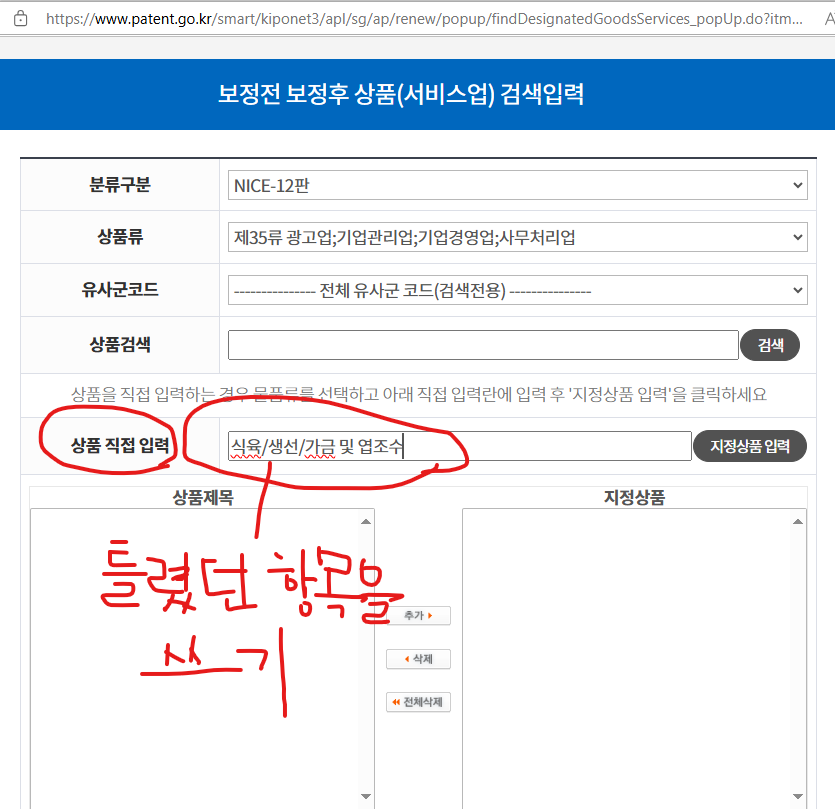 이유인즉 불명확한 지정상품이 있으니 이를 수정 제출하라는 것이었습니다.