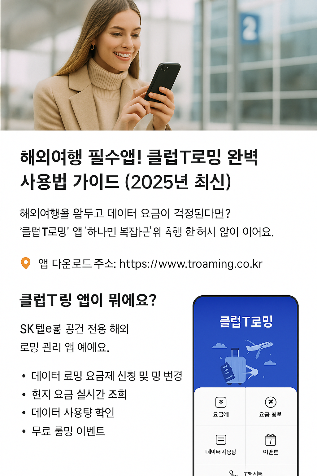 2025년 현재 버전 기준으로 클럽T로밍 앱 사용법을 아주 쉽게, 단계별로 정리해드릴게요.